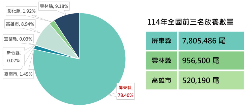 農業部漁業署。養殖漁業放養查詢平臺。(資料取得日期:2026年1月28日)https://fadopen.fa.gov.tw/fadopen/service/qrySpeciesSummaryYearlyReport.htmx